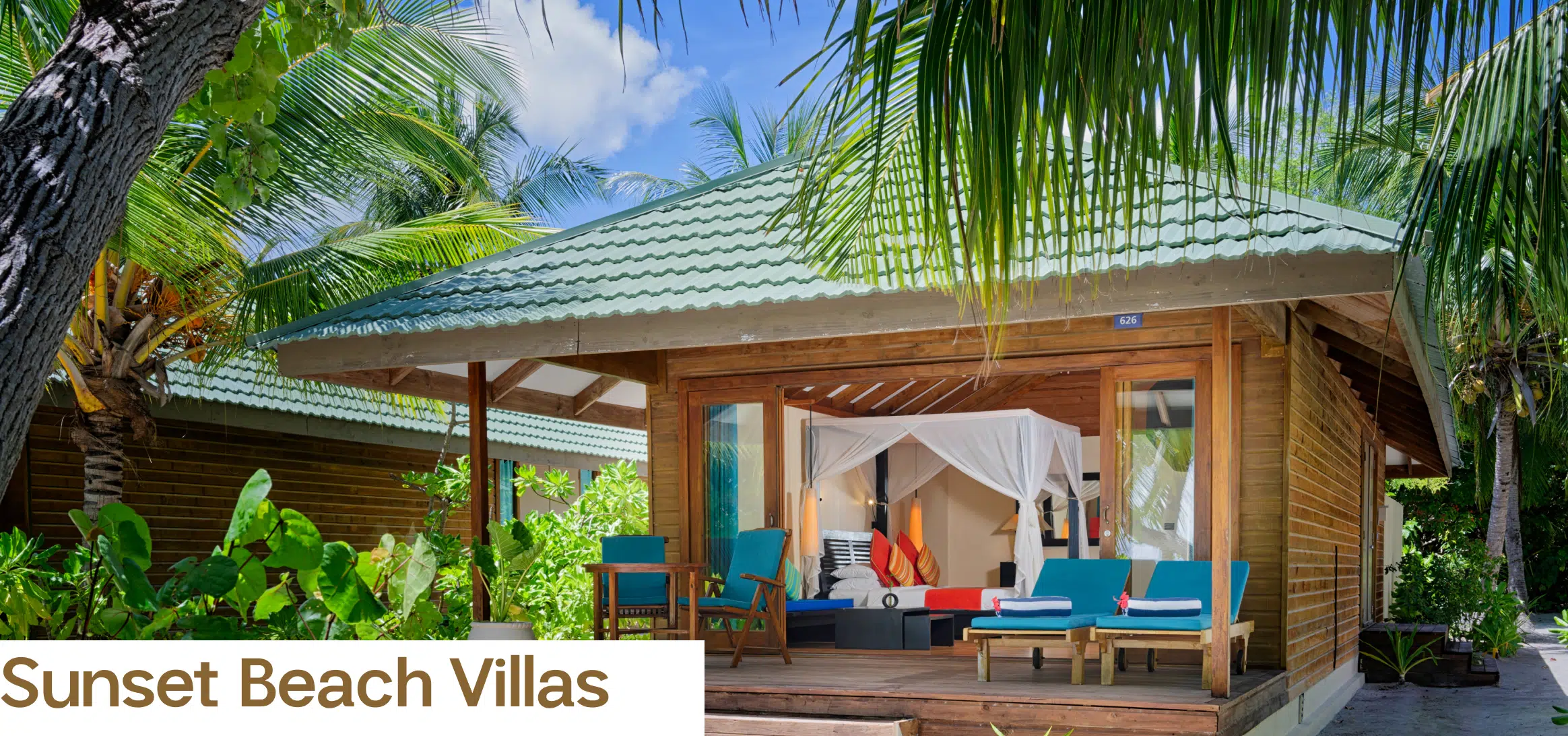 Embrace tranquility as you relax in our Sunset Beach Villa. Located on the island’s western side, these individual wooden bungalows offer breathtaking views of the lagoon and sandy beach, complemented by a private enclosed backyard. Feel the fresh breeze, sink your feet into fine sands, or simply relax on your front deck to watch a mesmerizing sunset.